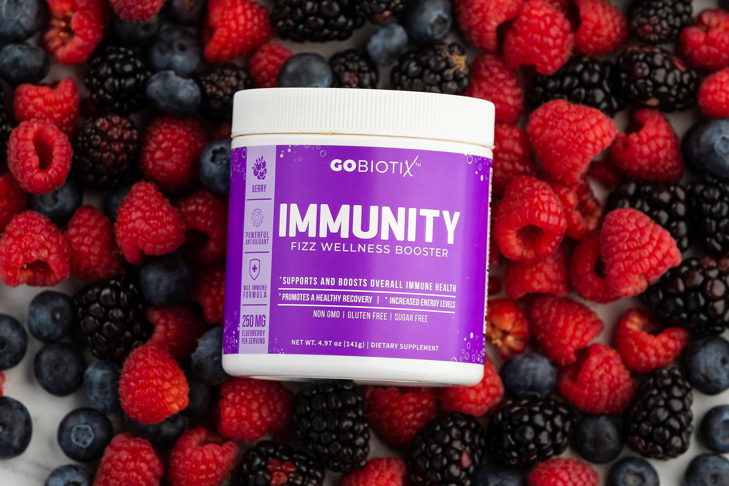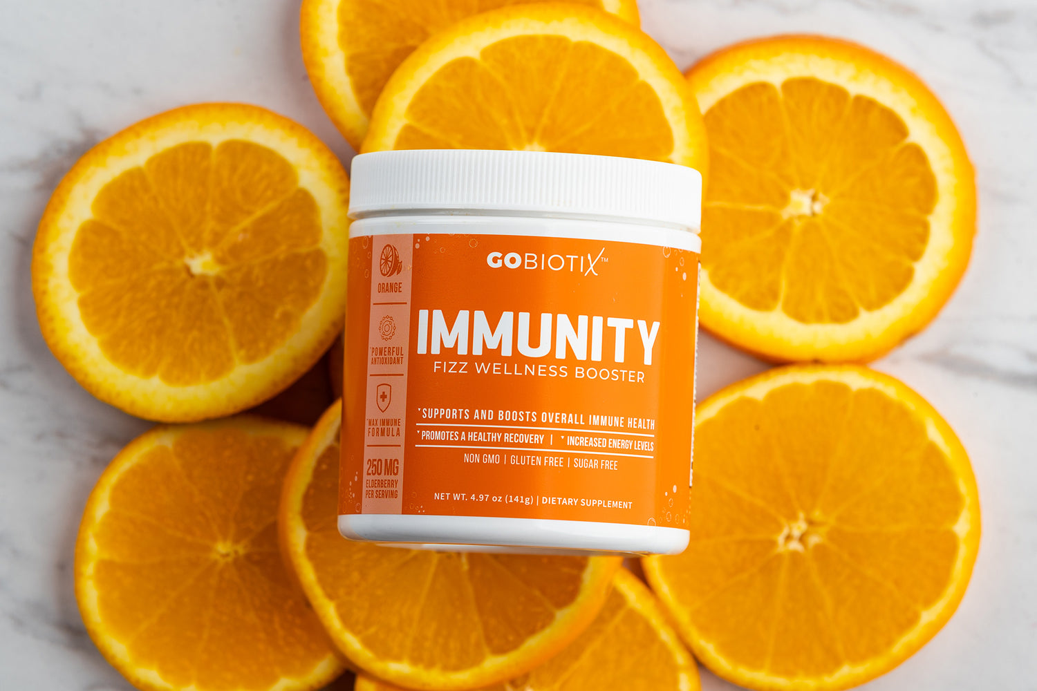 Mix one scoop into 6–8oz of water for a delicious, fizzy immune boost – no sugar, no gluten, no GMOs. Just clean, science-backed nutrition from GoBiotix.