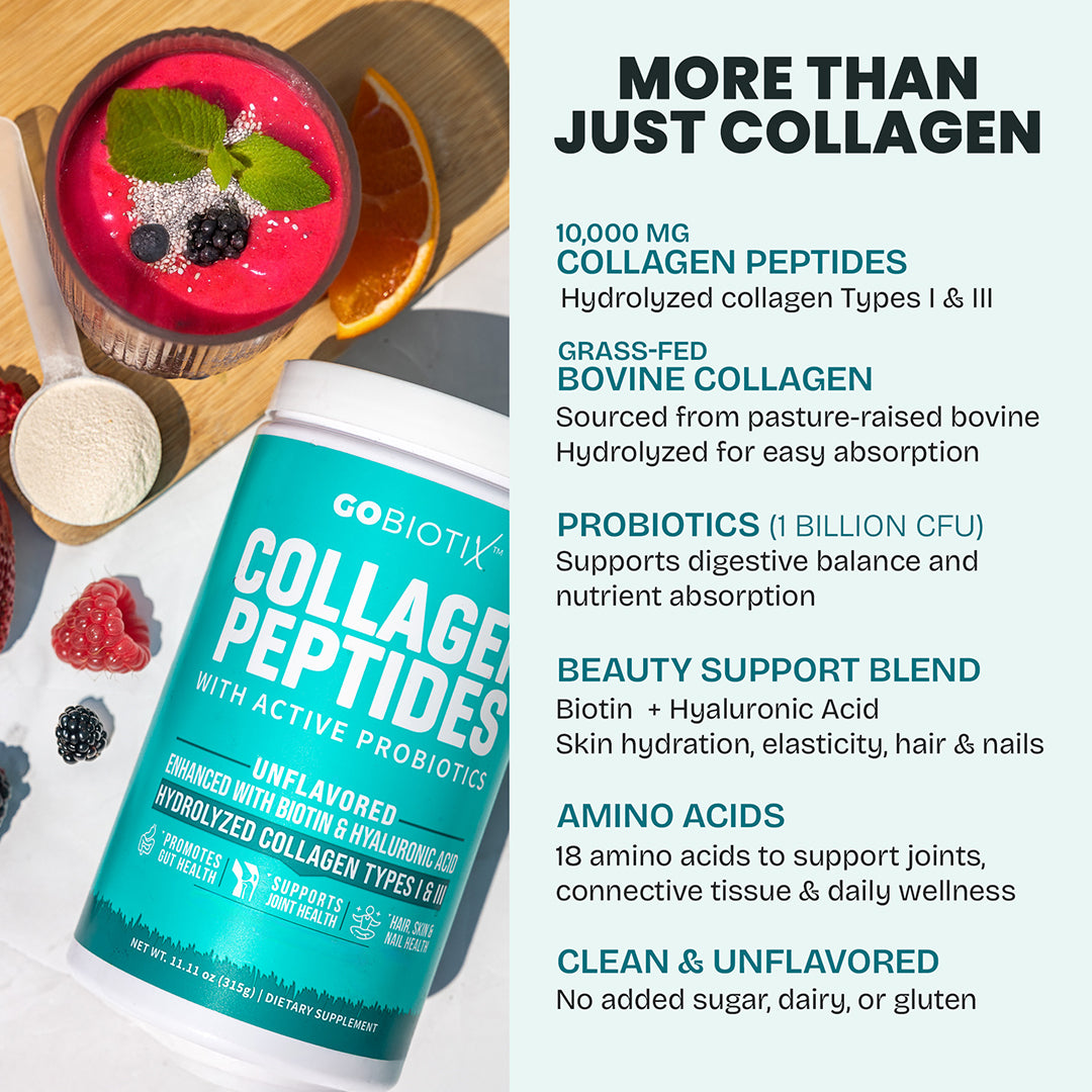 Yes! Our collagen pairs perfectly with other GoBiotix products like Prebiotic Fiber Boost, Magnesium Complex, or Greens N’ Reds Superfoods for a complete gut and wellness routine.