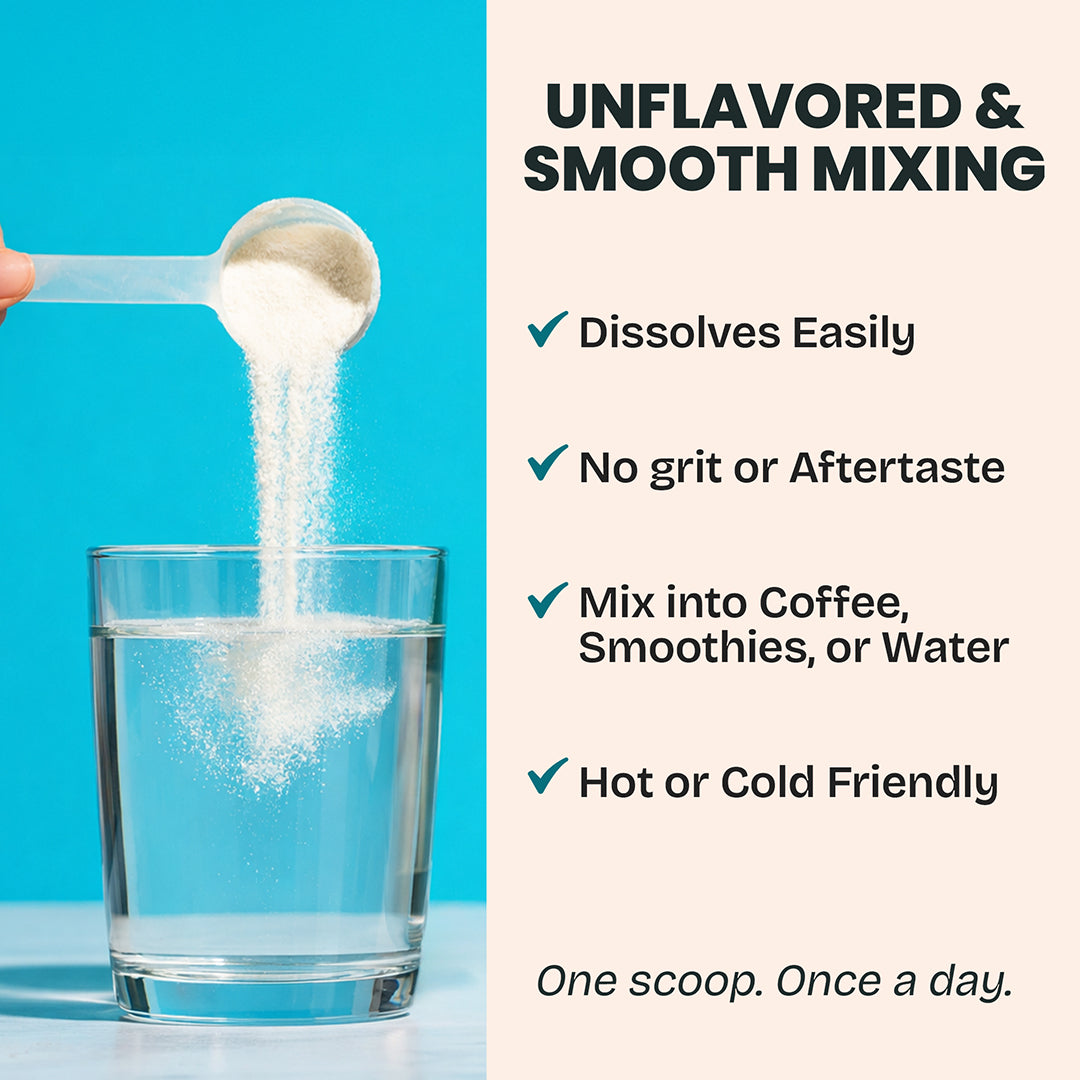 Unflavored & Easy to Mix: Dissolves seamlessly into coffee, smoothies, or water