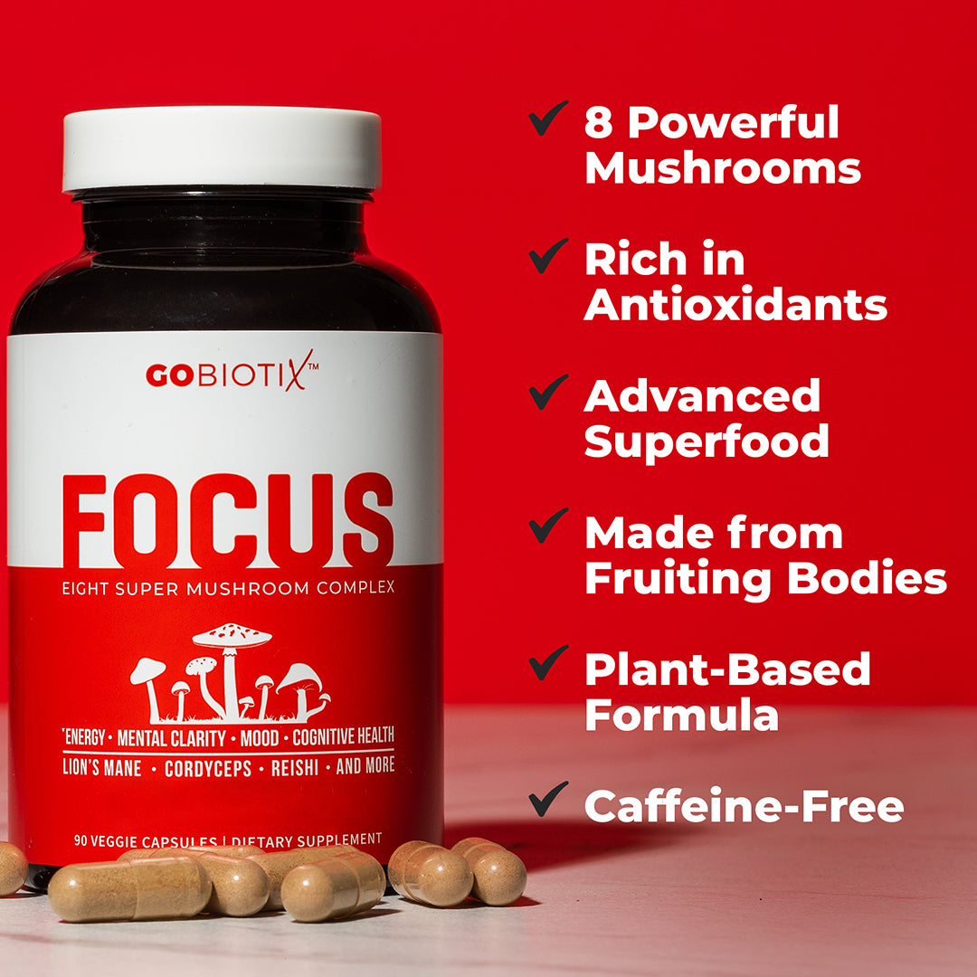 While this can be a matter of preference, GoBiotix Focus 8-Mushroom Complex Supplement is best taken in the morning before your first meal.